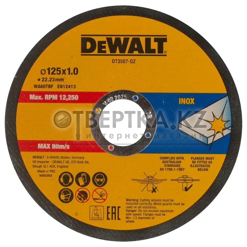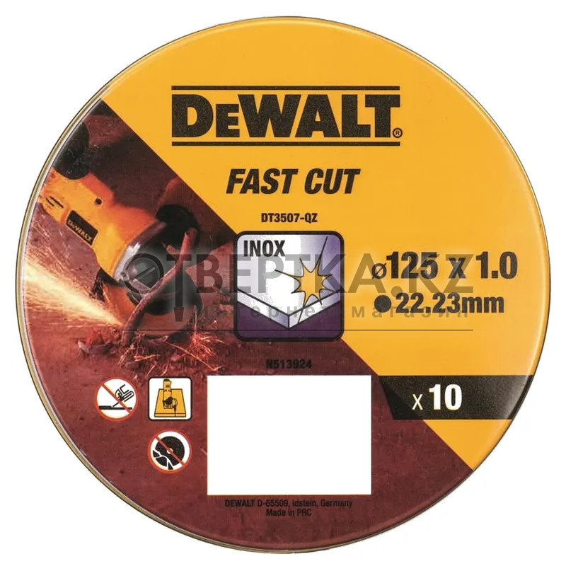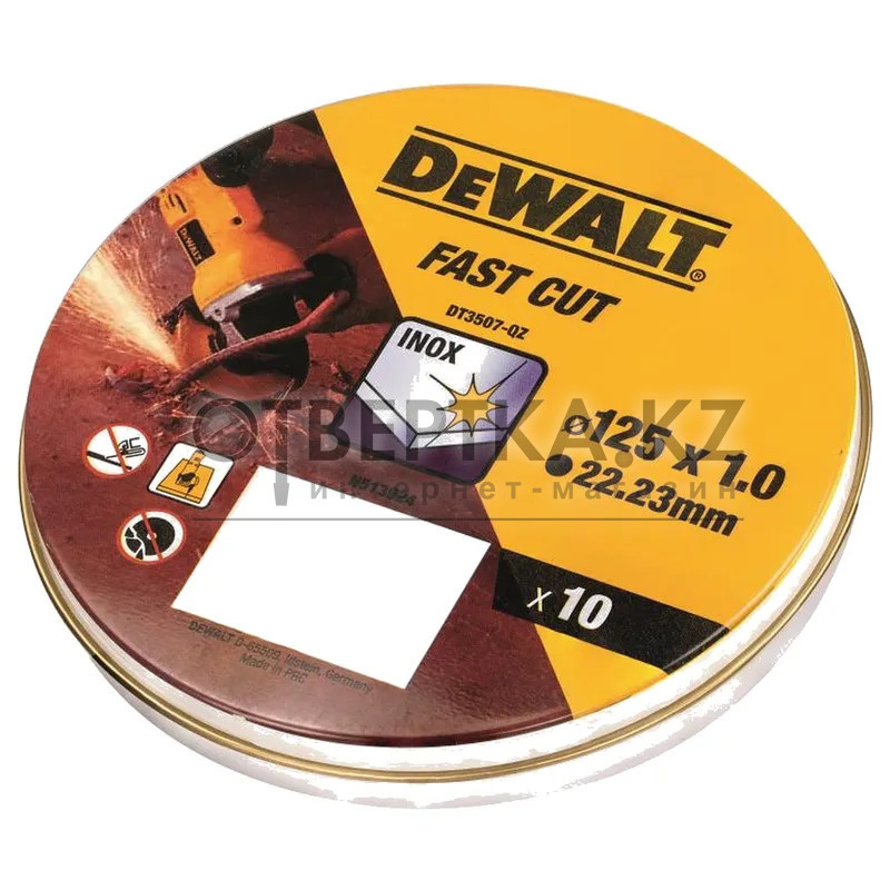Набор дисков по нержавеющей стали DeWALT 125х1х22.23мм в жестяной коробке 10шт. DT3507-QZ - предназначен для установки на угловые шлифовальные машины сетевого и аккумуляторного типов. Модель используется для быстрой и четкой резки металла.