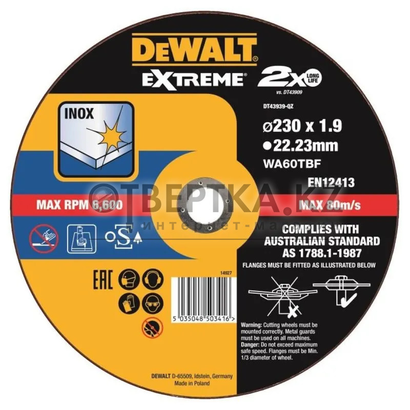 Диск отрезной по стали DeWALT "EXTREME" WA60TBF 230х1.9х22.23мм DT43939 - предназначен для резки нержавеющей стали и других черных металлов.