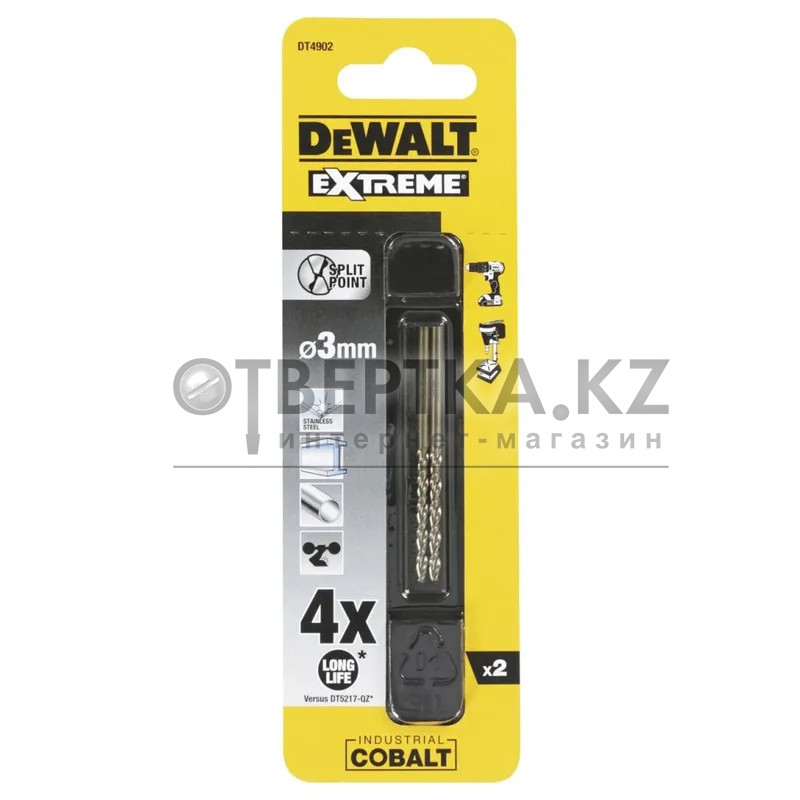 Сверло по металлу DeWalt 3х61х33мм 2шт. DT4902-QZ - предназначено для использования по металлу, включая нержавеющую сталь. Применяется для сверления тонколистового профильного проката, а также труб без предварительного накернивания, где требуются точные и чистые отверстия. Золотистое оксидное покрытие предотвращает перегрев, увеличивая срок службы сверла.