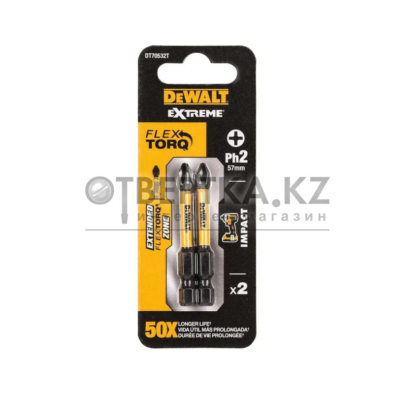 DT70532T-QZ — ударные биты PH2 длиной 57 мм, предназначенные для профессионального использования с шуруповёртами и дрелями. Обеспечивают надёжность и долговечность при интенсивной работе.