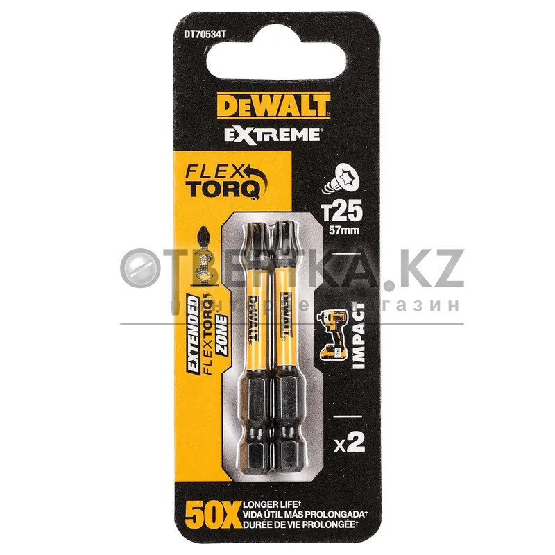 Биты ударные DeWALT T25 57мм 2шт. DT70534T-QZ - это компактный набор из двух прочных и ударных битов производства DeWALT. Каждый бит имеет профиль T25 и длину 50 мм, что делает их идеальными для работы с винтами, которые имеют головки с T-образным профилем. Эти биты специально разработаны для использования в условиях, где требуется высокая прочность и устойчивость к ударам, что делает их отличным выбором для профессиональных строителей и ремонтников.