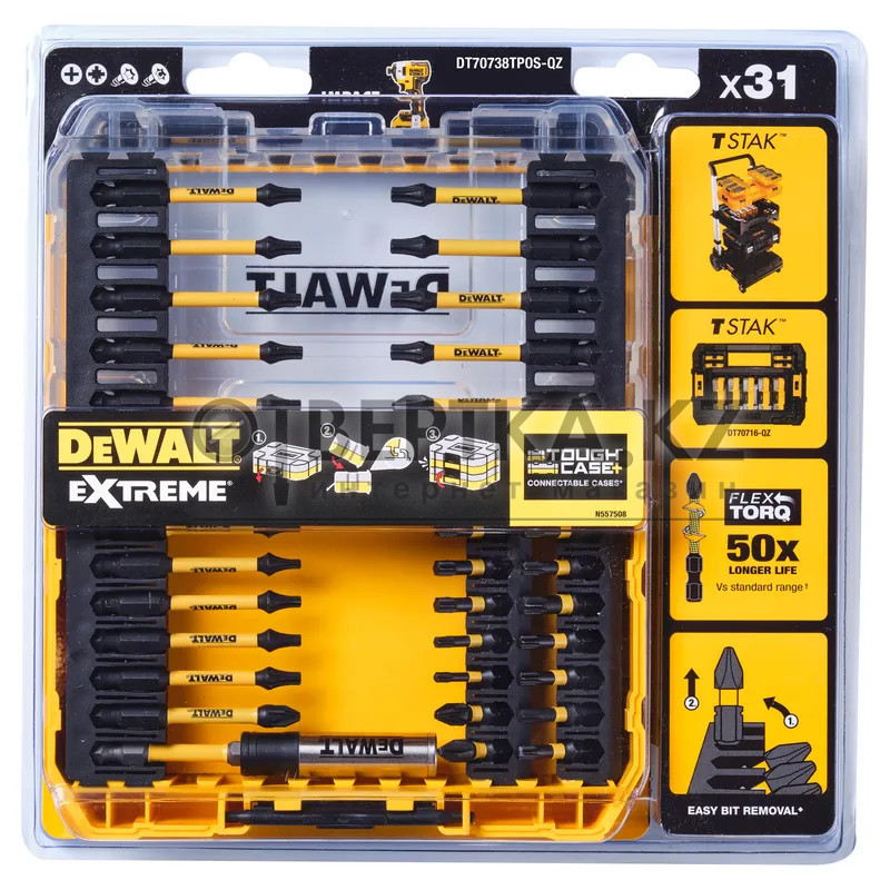 Набор бит и насадок DeWALT "FLEXTORQ" 31шт. DT70738TPOS-QZ - это высококачественный комплект для профессионального и домашнего использования. Благодаря инновационной технологии FLEXTORQ, биты обладают повышенной гибкостью и устойчивостью к высоким нагрузкам, что продлевает срок их службы и обеспечивает комфортную работу.