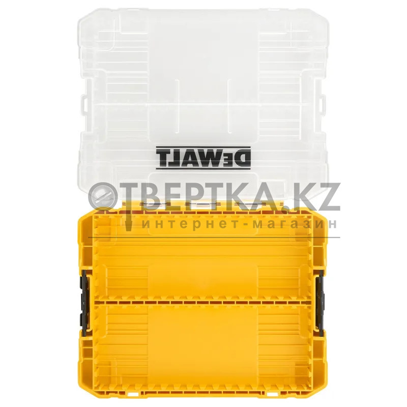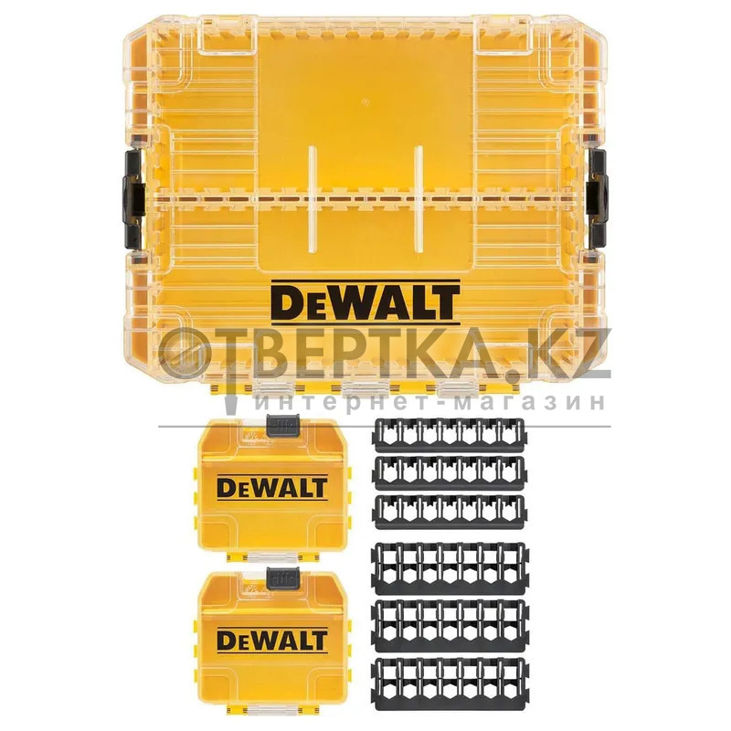 Набор-органайзер DeWALT Medium Tough Case DT70803-QZ - содержит пустой прочный футляр среднего размера и два небольших футляра-вкладыша, а также набор стержней для отверток. Это позволяет пользователю настроить собственное решение для хранения принадлежностей к электроинструментам и других мелких компонентов.