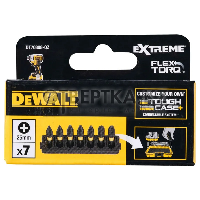 Набор бит DeWALT FLEXTORQ PHх25мм 7шт. DT70808-QZ - предназначен для профессионального использования с ударными шуруповертами. Биты обладают высокой прочностью и гибкостью, что обеспечивает долговечность и точное вкручивание.