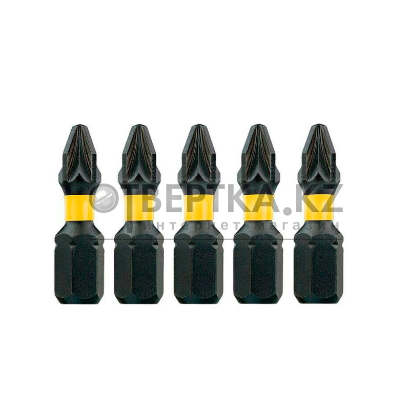 В комплект входят 5 ударных бит DeWALT IMPACT TORSION PZ3 длиной 25 мм.