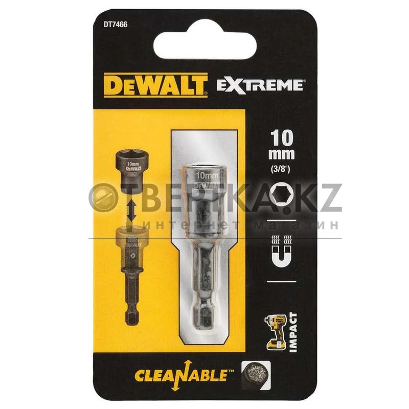 Шестигранная насадка очищаемая DeWALT "EXTREME" 3/8" 10мм DT7466-QZ - служит для работы совместно с шуруповертом или винтовертом. Изготовлена из конструкционной стали, термически обработана, что обеспечивает прочность и надежность. Оснащена закаленным хвостовиком, устойчива к проворачиванию во время интенсивных нагрузок. Имеет съемную рабочую часть, что позволяет прочистить насадку от стружки обрабатываемого материала.