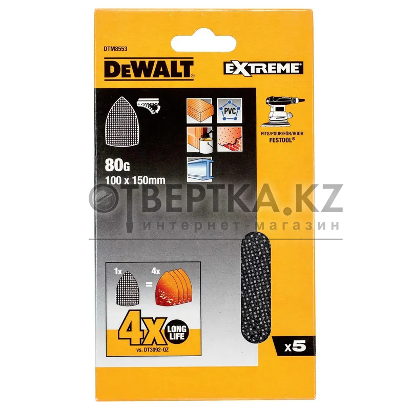 Сетка абразивная DeWalt G80 100х150мм 5шт. DTM8553-QZ - это профессиональный абразивный материал, предназначенный для шлифовальных работ.