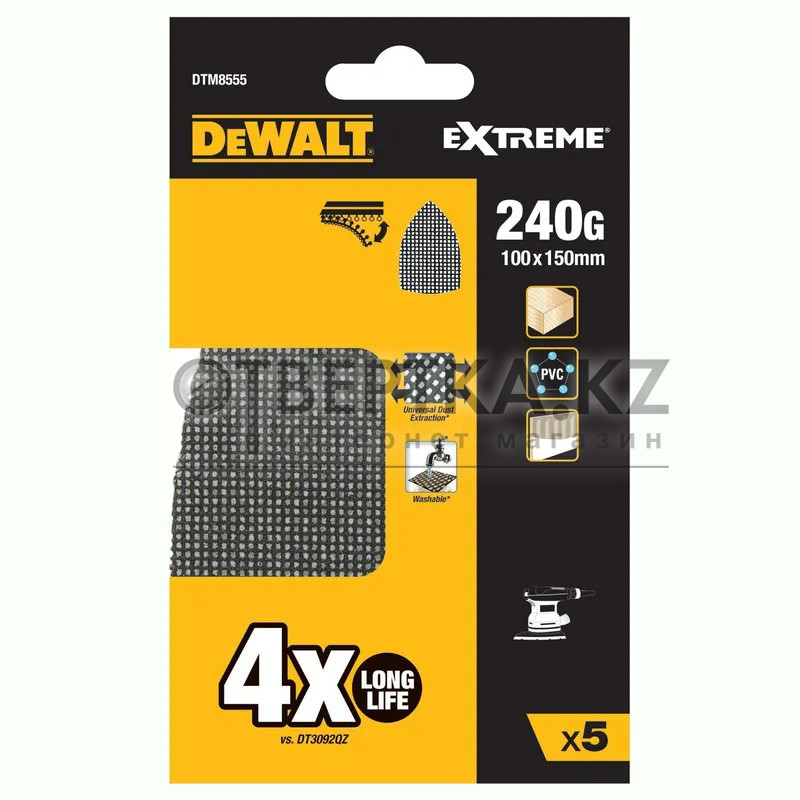 Сетка абразивная DeWalt G240 100х150мм 5шт. DTM8555-QZ - это профессиональный абразивный материал, предназначенный для шлифовальных работ.