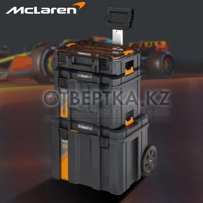 Комплект ящиков для инструмента DEWALT TSTAK McLaren 3шт. DWST60452-1 - новая линейка ящиков, сумок и рюкзаков в коллаборации с McLaren F1 - это гарантия сохранности вашего инструмента в самых тяжелых условиях, его удобного распределения и абсолютной совместимости с другими продуктами DEWALT. Лучший выбор, совмещающий функциональность и стиль! Комплект ящиков для хранения оснащен выдвижной рукояткой и колесами для того, чтобы его было удобно возить по рабочей зоне, держа всё необходимое при себе, но не поднимая тяжести. Все модули системы TSTAK от DEWALT могут устанавливаться один на другой. Боковые защелки обеспечивают их надежное соединение. Кроме того, все ящики защищены от влаги по стандарту IP54.