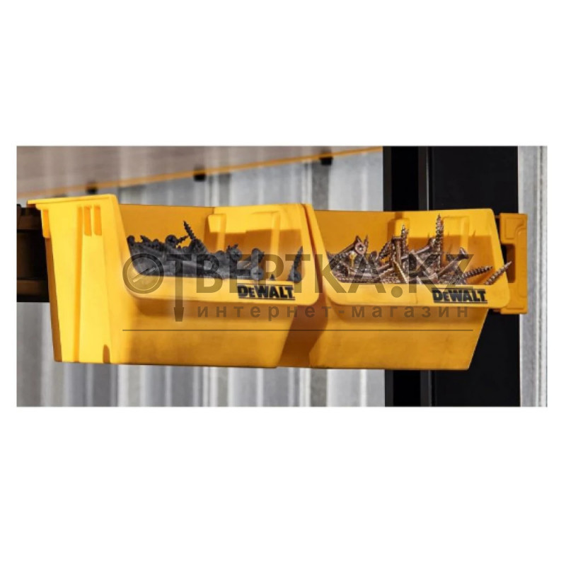 DeWALT DWST82813-1 — набор из двух прочных контейнеров, которые могут использоваться самостоятельно или как часть модульных систем хранения DXL и ToughSystem 2.0. Крепятся на металлические направляющие без инструментов и подходят для хранения крепежа, метизов и мелкого инструмента.
