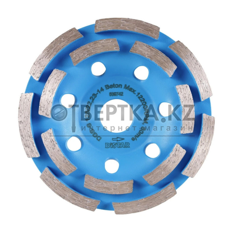 DGS-S Beton 125×22,23 Distar — производительный и доступный алмазный шлифовальный круг с двухрядным алмазным сегментом, предназначенный для грубой обработки поверхностей из обычного и армированного бетона, а также бетонно-мозаичных покрытий. Эффективно снимает наплывы бетона после заливки опалубки и обеспечивает высокую скорость работы при минимальных затратах. Круг является отличным решением для домашнего использования и небольших объёмов профессиональных работ. Лёгкий металлический корпус и двухрядное расположение сегментов обеспечивают стабильную работу и оптимальный отвод тепла. Применяется на ручных УШМ при работе без охлаждения. Выпускается в диаметрах 100, 125, 150 и 180 мм с посадочным отверстием 22,2 мм.