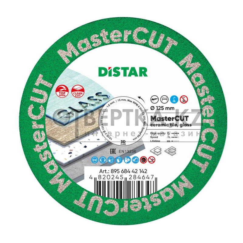 MasterCUT — диск для быстрого и точного реза керамогранита и сверхпрочных материалов, таких как стекло. Используется на углошлифовальных машинах в сухом режиме или на плиткорезах с водой. Инструмент изготовлен методом вакуумного напекания сверхпрочных алмазов на высококачественный стальной корпус. Специальная вальцовка корпуса обеспечивает комфортную и безопасную работу. Диск минимизирует сколы и практически не требует доработок после реза. Ресурс диска: 20–30 м в сухом режиме и 30–40 м с водой по керамограниту толщиной 10 мм.