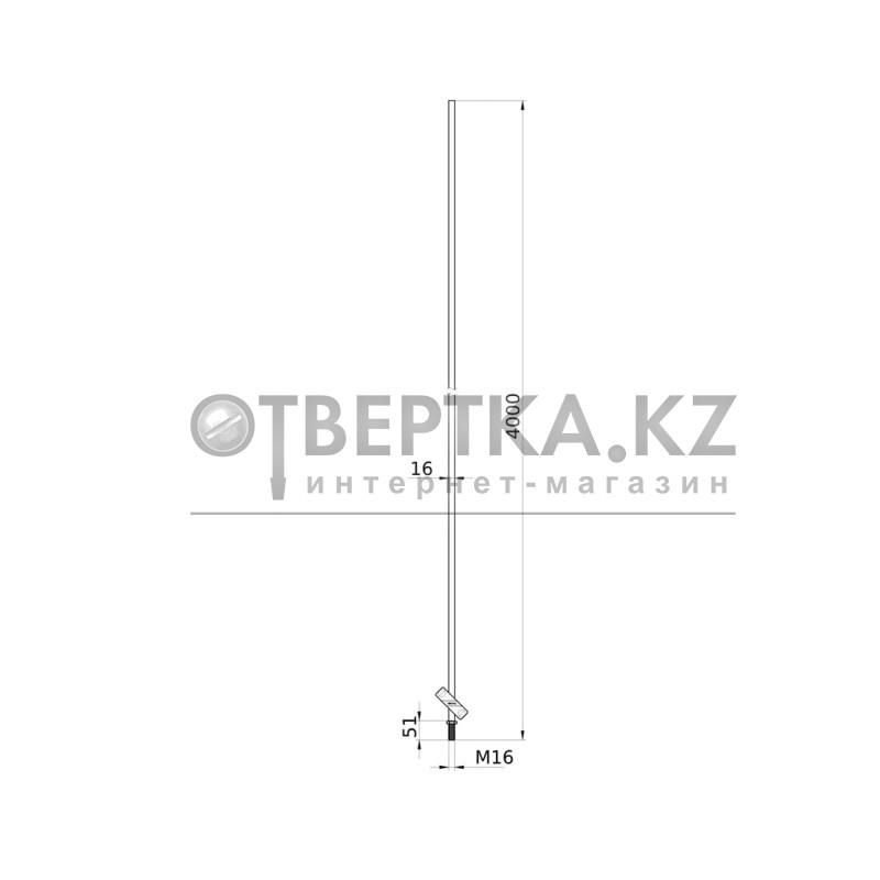 Молниеприемный стержень применяется для установки стержневого молниеприемника на бетонном основании на кровле. Резьба М16 позволяет ввинтить стержень в бетонное основание. Стержень поставляется в комплекте с соединителем для подключения токоотвода - круглого 8-10 мм или плоского 25-50 мм проводника. Длина стержня - 4000 мм, диаметр 16 мм. Материал - алюминий.