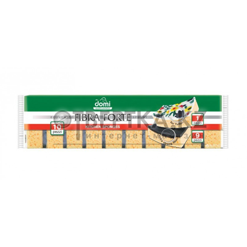 9 губок с экстра прочной фиброй Fibra Forte, которые обеспечивают удаление даже трудных загрязнений с поверхностей посуды, кухонной мебели. В силу высокой абразивности фибры – не применяйте для деликатных, тефлоновых, окрашенных поверхностей или со специальным покрытием. Дополнительно 1 губка с фиброй antigraffio — специально для ухода за тефлоновой, керамической или другой деликатной посудой. Фибра не содержит абразивных частиц, не оставляет царапин.
