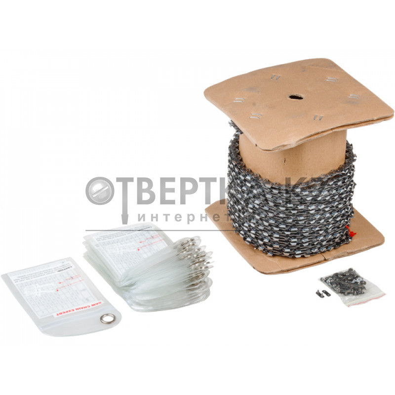 В комплекте с бухтой идет набор звеньев для расклепки и набор пакетов для индивидуальной упаковки.