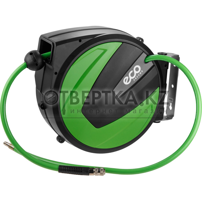 Шланг предназначен для соединения воздухонагнетательного оборудования с различным пневматическим инструментом. Оборудован катушкой закрытого типа. Имеет поворотный 180° кронштейн для крепления к стене. Катушка оснащена системой автоматической смотки. На шланге имеется передвижной ограничитель.