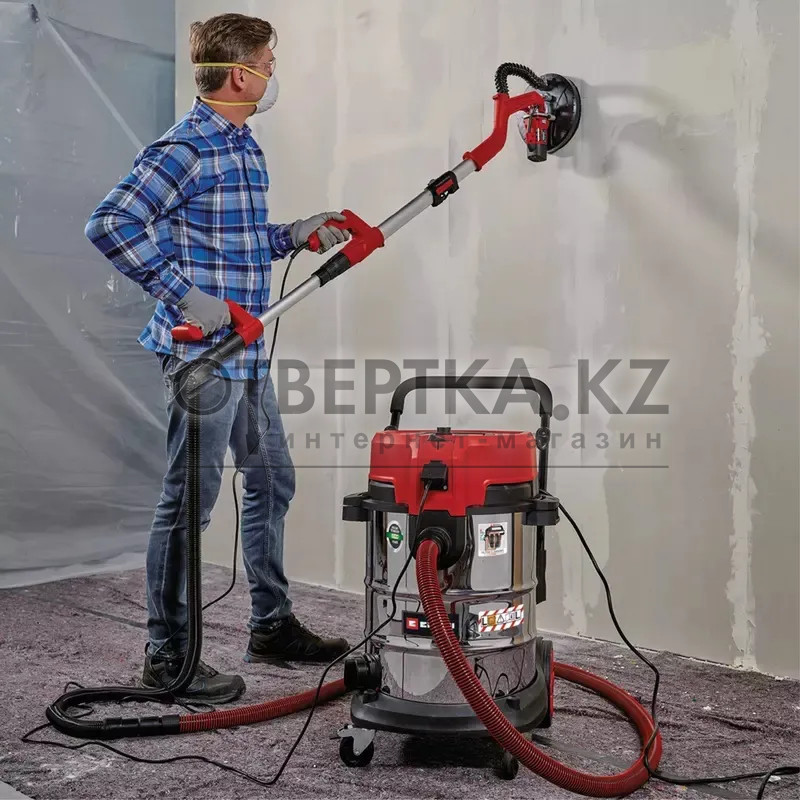 Сетевой пылесос Einhell TE-VC 2350 SACL 2342475 - имеет инновационную систему очистки фильтра от пыли класса L, которая эффективного удаляет как крупные частицы, так и микрочастицы грязи и пыли. У пылесоса имеется функция выдувания для быстрой очистки всасывающего шланга или удаления мусора из труднодоступных мест. Для удобной работы предусмотрены два больших и два роликовых колеса, а также ручка для перемещения и держатель кабеля на корпусе. Для слива жидкости в баке предусмотрен дренажный клапан. На ручке установлен регулятор воздушного потока. Пылесос укомплектован телескопической трубкой из нержавеющей стали, сверхпрочным пластиковым всасывающим шлангом длиной 3 м, комбинированной насадкой, щелевой насадкой, пылесборником, гофрированным HEPA-фильтром и поролоновым фильтром. В корпус встроена розетка для инструмента с синхронным стартом.