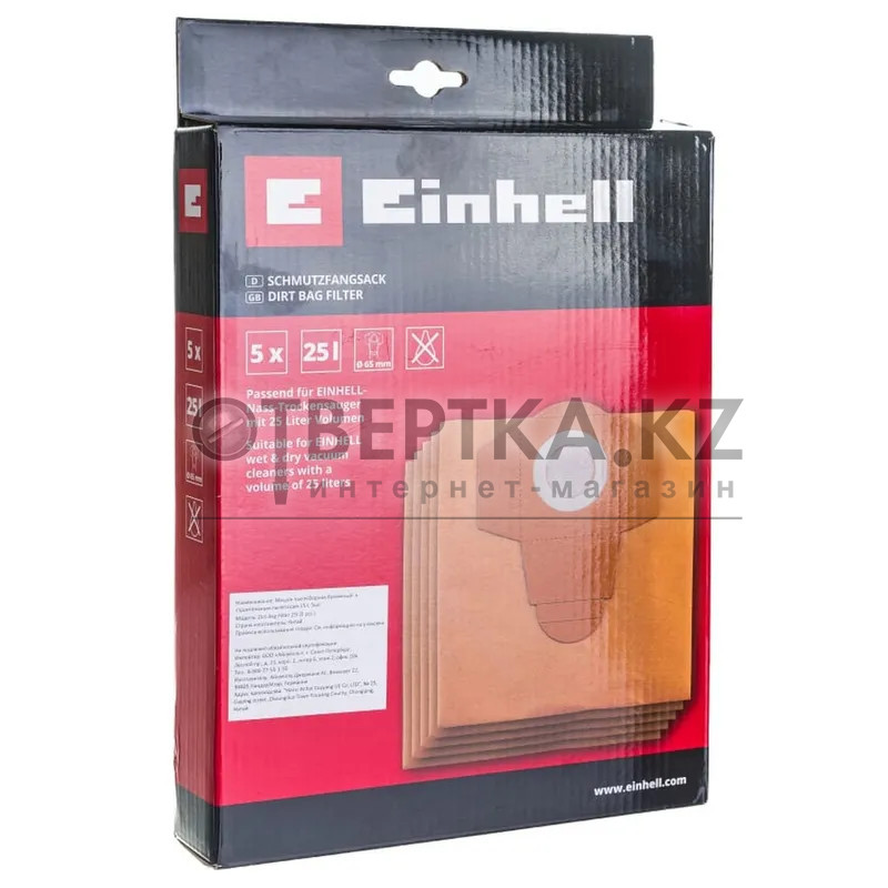 Мешок для пылесоса Einhell 25л 5шт. 2351150 - применяется совместно со строительными пылесосами Einhell объемом 25 литров. В комплекте 5 бумажных мешков. Для строительных пылесосов Einhell: TC-VC 1825 2342430, TE-VC 1925 SA 2342354.