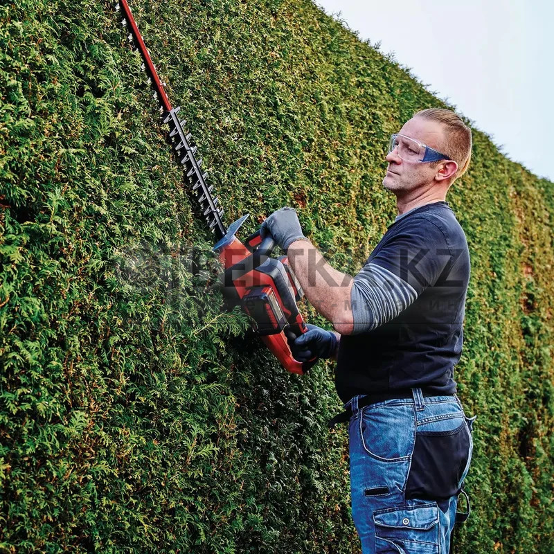 Кусторез аккумуляторный Einhell GE-CH 36/65 Li-Solo 3410960 - является мощным и беспроводным инструментом, который обеспечивает неограниченную свободу при работе в саду и дома. Все аккумуляторные батареи серии Power X-Change, предназначенные для высокопроизводительных систем, могут использоваться в рабочих и садовых инструментальных изделиях этой серии. Беспроводной кусторез питается от двух аккумуляторов 18 В. Кусторез стрежет изгороди и кустарники до 2700 срезов в минуту и имеет отрезной рельс длиной 720 миллиметров. Резцы выполнены из стали с лазерной огранкой и с алмазной шлифовальной стали и имеют зубчатые шестерни, которые рассчитаны на длительный срок службы. Вращающаяся ручка и эргономичная тонкая передняя ручка с микровыключателем делают ее удобной для работы. Имеется практичный сборщик черенков. Безкорпусная отделка лезвия имеет алюминиевую крышку для резцов, а в состав изделия входит ударопрочная защита с держателем для подвешивания на стене, а также прочная защита для хранения и транспортировки. Этот кусторез поставляется без аккумулятора и зарядного устройства, которые доступны к покупке отдельно.