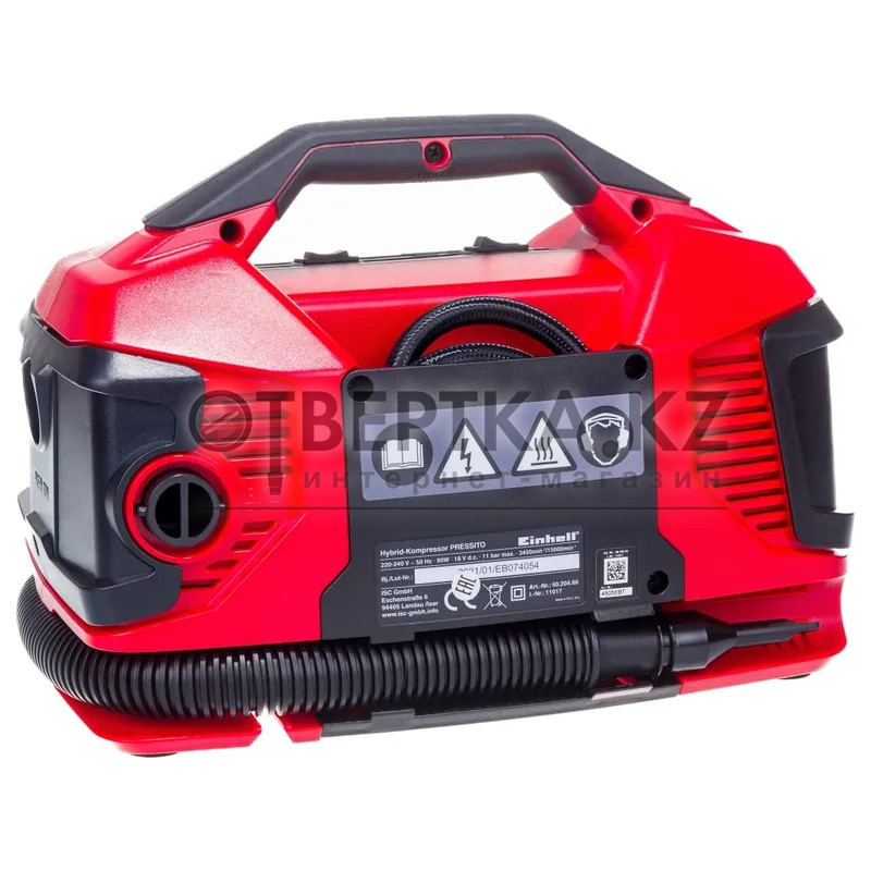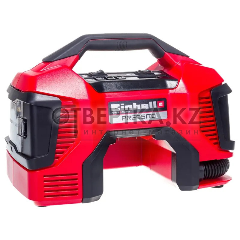 Компрессор Einhell PRESSITO 4020460 - питается как от сети 220В, так и от 18В аккумуляторной батареи из семейства Power X-Change. В компрессоре сочетаются насос высокого давления для подкачки автомобильных шин, велосипедных шин и мячей, а также насос низкого давления для накачивания/сдувания надувных матрасов и резиновых лодок (функционал 6-в-1). Набор из трех адаптеров включен в поставку. Легкий и компактный компрессор не займет много места, а благодаря возможности работы от аккумуляторной батареи его можно взять с собой в дорогу.