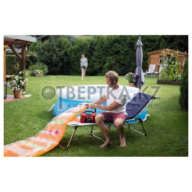 Компрессор Einhell PRESSITO 18/21 4020467 - универсальное универсальное устройство для работы дома, в мастерской или гараже. В качестве члена семейства PXC этот инструмент можно комбинировать со всеми аккумуляторами семейства Power X-Change. Для работы требуется одна батарея Power X-Change 18 В. Используется в качестве насоса высокого давления для шин автомобилей, мотоциклов и велосипедов, а также насоса низкого давления с функцией всасывания низкого давления для надувных матрасов и резиновых лодок. Необходимое давление можно установить на насос высокого давления. При достижении этого давления компрессор выключается автоматически. Функции включают цифровой индикатор давления с ручным управлением (выбор единиц измерения: бар, PSI, кПа) и кнопку для надувания в диапазон высокого давления без предварительной настройки давления. Есть отделение для хранения адаптера для 3 предметов. Компрессор Einhell Pressito 18/21 благодаря аккумуляторной батарее можно легко взять с собой туда, где он нужен.