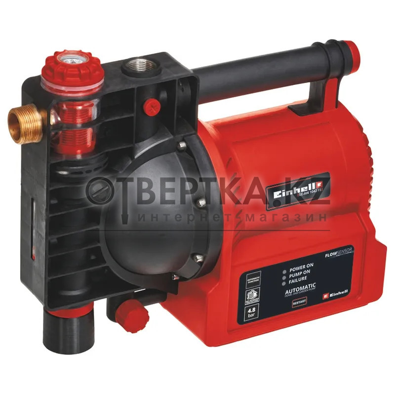 Сетевая автоматическая насосная станция Einhell GE-AW 1042 FS 4177010 - имеет 1050W номинальную мощность и практичный индикатор забора и заполнения водой. Сливной винт обеспечивает защиту насоса от мороза и замерзания воды в нем. Для проверки количества грязи в фильтре грубой очистки имеется индикатор. Датчик расхода оснащен светодиодным дисплеем. Автоматическая система защищена от повреждения рядом защитных средств, включая защиту от сухого хода, термостатический выключатель и фильтр грубой очистки с обратным клапаном. Высококачественные соединители впуска и давления выполнены из металла. Кроме того, автоматическая система хозяйственно-бытового водоснабжения имеет дополнительный второй напорный соединитель и высокопрочные механические уплотнения.