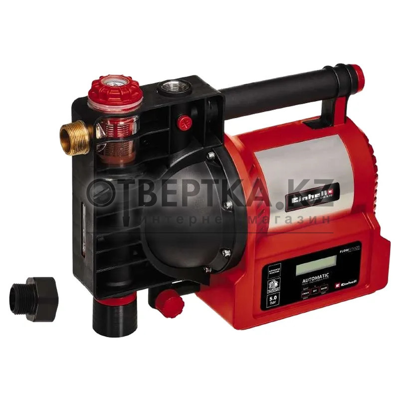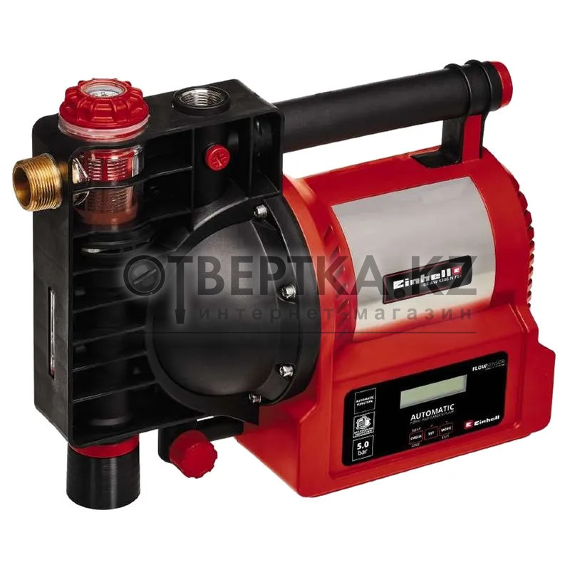 Сетевая автоматическая насосная станция Einhell GE-AW 1246 N FS 4177020 - с номинальной мощностью 1200 Вт для добычи чистой воды дает Вам эффективный способ экономии воды и сокращения расходов на воду: Вместо использования дорогостоящего сетевого водоснабжения автоматическая система бытового водоснабжения Einhell позволяет использовать воду из резервуаров, шахт, колодцев или цистерн для внутреннего потребления в доме и для использования в саду. Автоматическая бытовая система водоснабжения с кормусом из нержавеющей стали имеет практичный индикатор всасывания и уровня воды, а также большой водяной наполнитель и водоотливной винт, чтобы обеспечить ее защиту от мороза. Для проверки возможной грязи в фильтре грубой очистки имеется индикатор грязи. Датчик расхода оснащен светодиодным дисплеем. Автоматическая система защищена от повреждений с помощью ряда защитных средств, включая защиту от сухого хода и защиту от заваривания, а также фильтр грубой очистки с обратным клапаном. Высококачественные впускные и напорные соединители выполнены из металла.