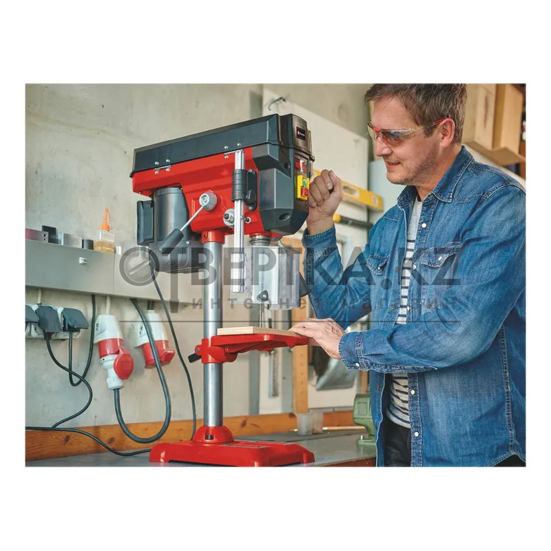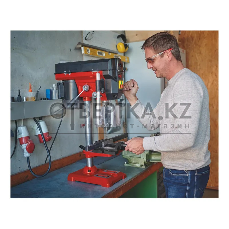 Сверлильный станок Einhell TE-BD 550 E 4250690 - при разработке вертикально-сверлильного станка Einhell TE-BD 550 E был сделан упор на безопасность и точность. Скорость можно плавно регулировать без использования инструментов, а ЖК-дисплей всегда отображает текущую скорость. Высококачественный быстрозажимной патрон (0-13 мм) обеспечивает быструю установку оснастки. Асинхронный двигатель работает бесшумно, в то время как возможность регулировки высоты, угла наклона и поворота сверлильного стола делает работу более комфортной. При помощи специального ограничителя можно регулировать глубину сверления даже при серийном производстве. Шпиндель с шарикоподшипниками обеспечивает длительный срок службы. Откидной экран, защищающий от стружки, с микропереключателем обеспечивает безопасность при сверлении.