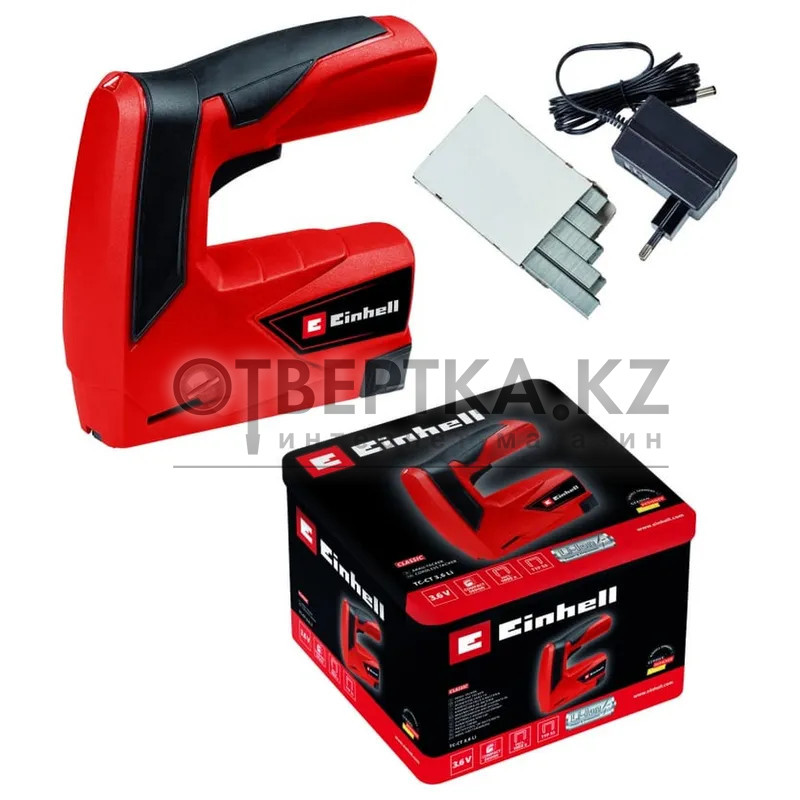 Степлер аккумуляторный Einhell TC-CT 3.6 Li 4257880 - это компактный инструмент, который удобно лежит в руке. Благодаря ёмкому литий-ионному аккумулятору с напряжением 3,6 В и эргономичной рукоятке с мягким покрытием, этот инструмент идеально подходит для скрепления скобами в любом месте дома без необходимости использования розетки поблизости. Скорость выстрела скобы составляет 30 выстрелов в минуту. Прижимная скоба нажатия защищает человека и материал, предотвращая случайное срабатывание. Практичный индикатор уровня заполнения и система пополнения упрощают загрузку большего количества скоб. Поставляется с 1000 скобами и зарядным устройством в металлической коробке.