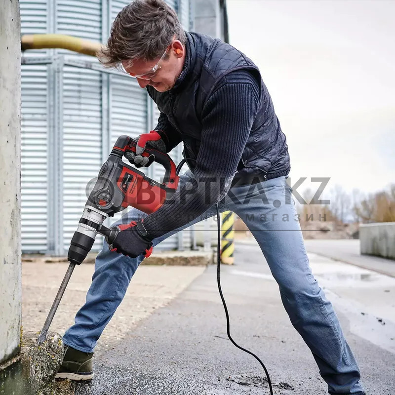 Перфоратор Einhell SDS-Max TE-RH 40 3F 4257935 - является мощным 1050W-помощником с тремя основными функциями: сверление с ударом, долото с блокировкой, долото без блокировки. Пневматический ударный механизм обеспечивает очень хорошую прямую тягу для бура, диаметром до 40 мм. В инструменте присутствует переключатель функций, а также рукоятки с мягкими накладками, которые обеспечивают прочное удержание инструмента во время работы. В перфораторе установлен SDS-Max патрон. Электронное управление оборотами позволяет отрегулировать инструмент для необходимого материала. В комплекте к перфоратору идут 2 зубила, а также пластиковый фирменный кейс Einhell.