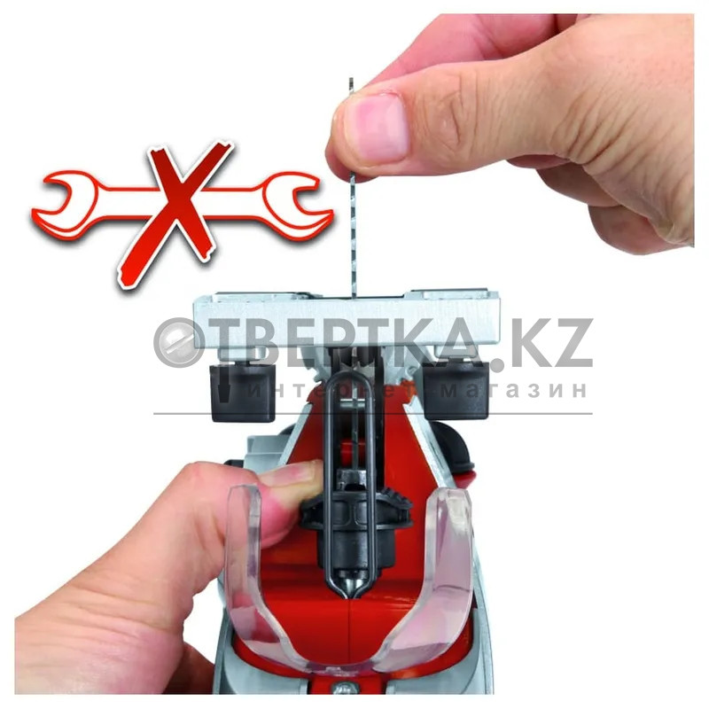 - Замена пильного полотна и изменение угла наклона без применения инструмента