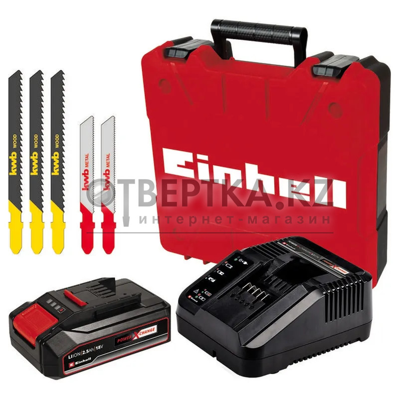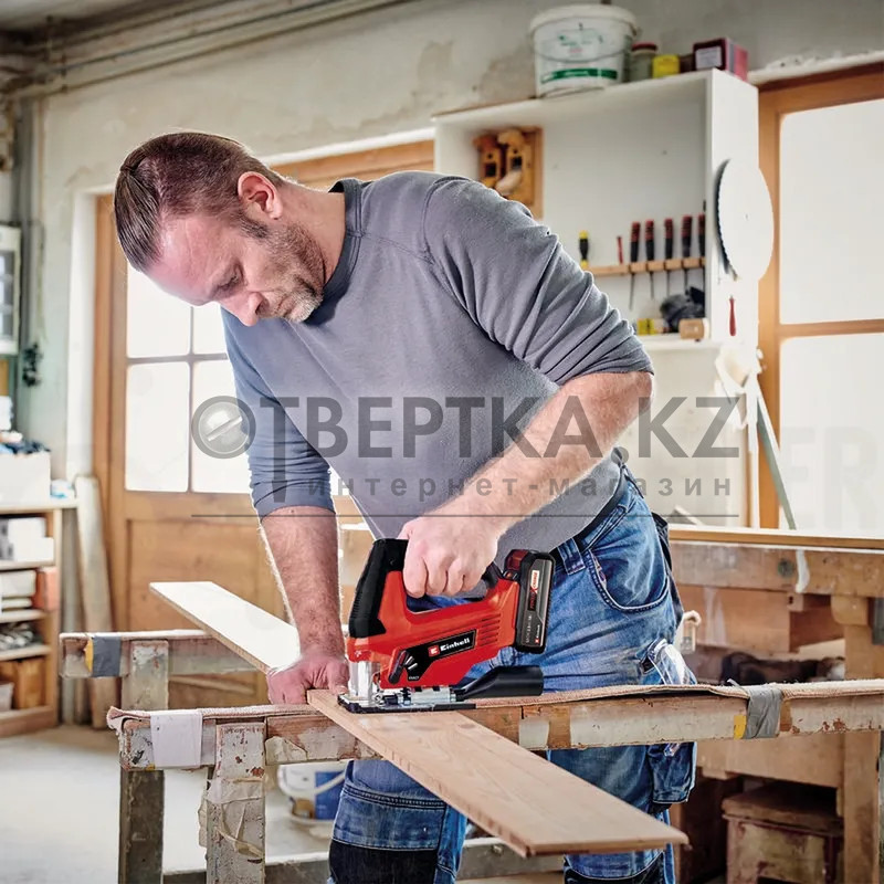 Аккумуляторный лобзик Einhell TC-JS 18 Li 2.5Ah 4321228 - универсален в использовании и предназначен для быстрого и точного пропила. Наличие аккумулятора позволяет работать лобзиком независимо от наличия источника питания электросети дома, в мастерской или гараже. Инструмент входит в линейку инструментов PXC и совместим со всеми аккумуляторами этой линейки. Благодаря высокой плавности хода аккумуляторный лобзик обеспечивает точные распилы, а для быстрого распила можно включить маятниковый ход. Замена пильных полотен осуществляется без вспомогательных инструментов благодаря универсальному держателю. Функция сдува пыли обеспечивает оптимальную видимость во время работы. Пластиковая скользящая вставка предотвращает повреждение заготовок, требующих бережного отношения.