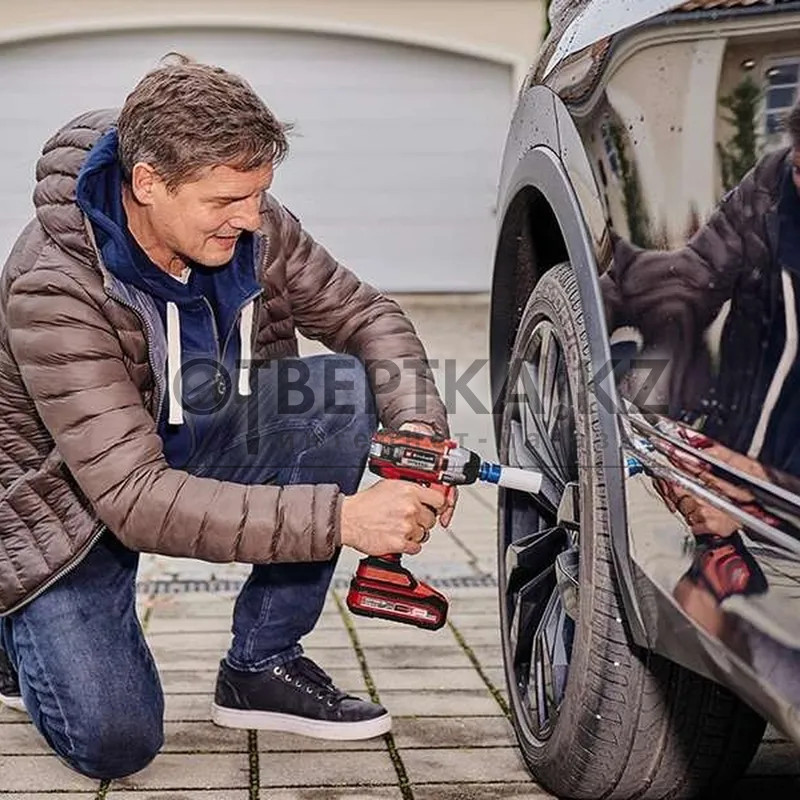 Аккумуляторный гайковерт Einhell IMPAXXO 18/230 Solo 4510080 - предназначен для завинчивания/вывинчивания колесных гаек, а с помощью адаптера для бит работ по дереву, металлу: для завинчивания/вывинчивания длинных крепежных элементов в мастерской или гараже. Einhell IMPAXXO 18/230 беспроводной ударный гайковерт является высококачественным ударным инструментом, который позволяет выкручивать даже плотно посаженные колесные гайки. Он оборудован бесщеточным двигателем для лучшей производительности и продления времени работы по сравнению с обычными двигателями с угольными щетками. У беcщеточного ударного гайковерта отсутствует какой-либо износ от механического трения с максимальным затягивающим моментом 230 Нм. Благодаря компактной и легкой конструкции с мягким эргономичным покрытием поверхности ударный гайковерт очень хорошо лежит в руке. Он имеет специальный ударный механизм для устранения любых торсионных сил на запястье пользователя. Таким образом, пользователь может легко затянуть любые гайки. Он оснащен прочным квадратным креплением на 1/2 дюйма, а также является переходником для бит. Встроенная Led подсветка для оптимального освещения рабочей зоны. Инструмент поставляется без аккумулятора и зарядного устройства, но может быть приведен в действие с помощью Power X-Change аккумулятора.