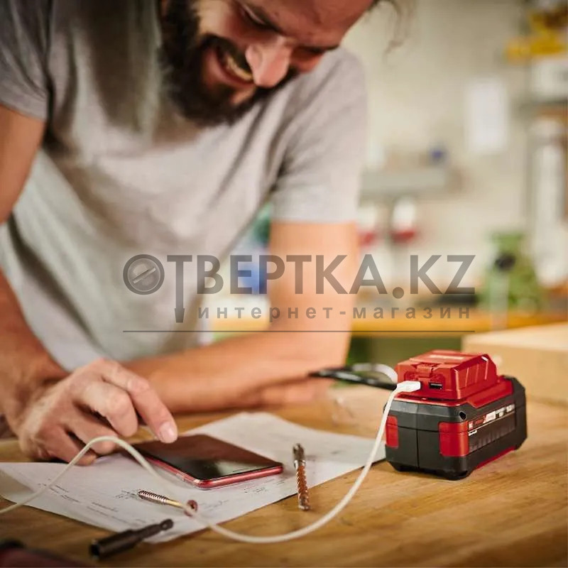 USB-адаптер Einhell TE-CP 18 Li USB-Solo 4514120 - это практичный и мобильный внешний источник питания для зарядки мобильного телефона, планшета, MP3-плеера и многих других небольших устройств. Адаптер является устройством семейства Einhell Power X-Change. Источником питания служит любой аккумулятор семейства Power X-Change, обеспечивающий много энергии для перезарядки разряженных устройств в любое время. Благодаря двум портам USB можно одновременно заряжать два устройства. Для быстрой зарядки один из USB-портов обеспечивает мощный ток 2,1 А. Время зарядки отдельных устройств зависит от емкости аккумулятора подключенного устройства. Поставляется без аккумулятора и зарядного устройства, они доступны отдельно.