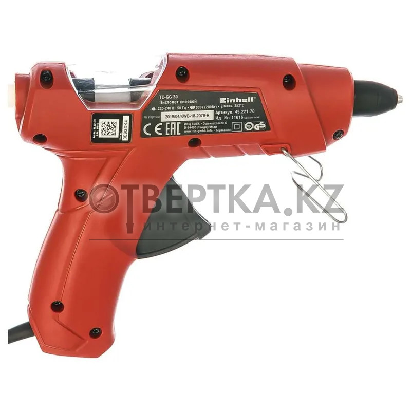 Клеевой пистолет Einhell TC-GG 30 4522170 - подходит для использования в домашней мастерской. С его помощью можно склеивать такие материалы, как дерево, пластмасса, текстиль, картон, кожа и т.д. Пистолет нагревает клеевые стержни до 195 градусов. Благодаря высокой температуре клей становится вязким и максимально впитывается в поверхность материала. Модель имеет смотровое окошко для индикации заполненности клеевого стержня.
