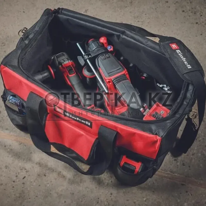 Сумка для инструментов Einhell Einhell Bag 56/29 4530078 - инструменты и аксессуары Einhell надежно уложены, и даже аккумулятор и зарядное устройство Power X-Change найдут свое место в практичной сумке. Сумка Einhell Bag 56/29 долговечна и надежна и оснащена усиленным основанием, что является преимуществом при выполнении серьезных задач в помещении или на открытом воздухе. Это значит, что качественные устройства хорошо защищены от неблагоприятных воздействий на стройке, в мастерской или в саду. В сумку Einhell 56/29 можно загрузить до 25 кг. Длина сумки 56 см, ширина 29 см и высота 30 см (внешние размеры). Сумка Einhell предлагает универсальные варианты хранения различных инструментов и аксессуаров. Все можно быстро перевезти в нужное место с помощью одной ручки. Ремень для переноски и ручка для переноски обеспечивают максимальное удобство. Благодаря различным карманам в сумке Einhell всегда порядок, а нужная посуда всегда под рукой.