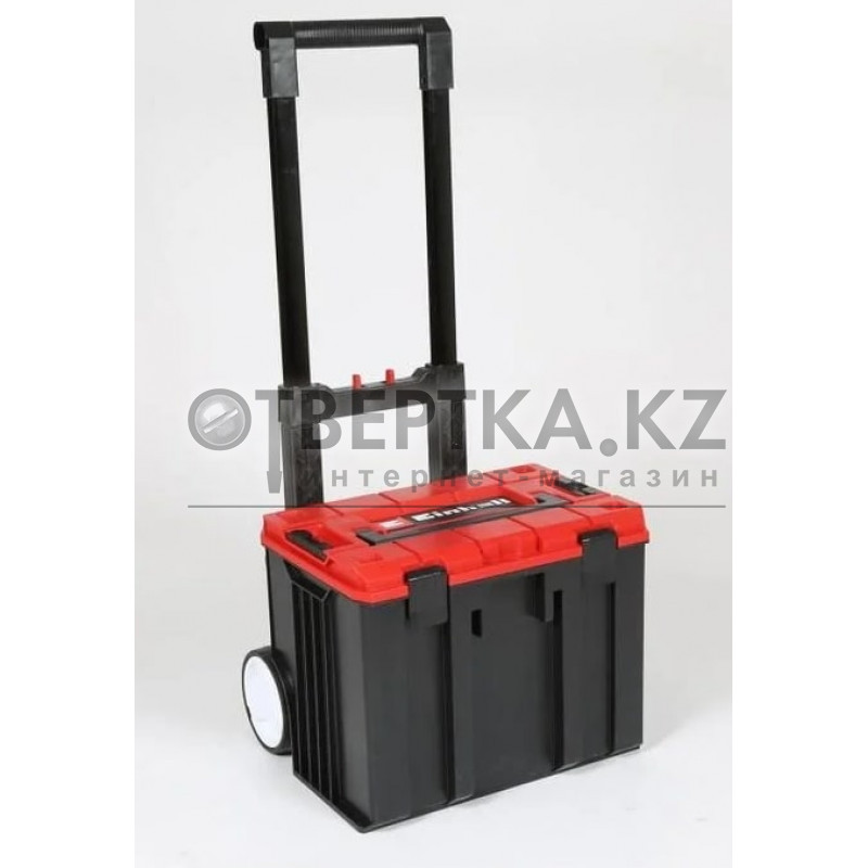 Кейс инструментальный системный является частью модульной системы E-Case компании Einhell. Он подходит для хранения и транспортировки в машине. Система блокировки обеспечивает соединение штабелированных кейсов, что позволяет легко транспортировать и хранить их. Кейс изготовлен из полипропилена и является брызгозащищенным, термозащищенный и ударопрочный благодаря высококачественному материалу. Устойчивая конструкция позволяет выдерживать общую полезную нагрузку до 120 кг. Большие колеса, а также телескопическая широкая рукоятка обеспечивают приятное передвижение по любой поверхности. Выдвижная эргономичная ручка обеспечивает комфорт при переноске. Кейс может быть оснащен навесным замком. Поставляется с лотком для ручного инструмента + стикером с надписью.