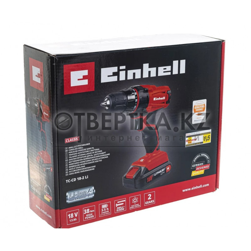 Аккумуляторный шуруповерт Einhell TC-CD 18-2 Li 1x1,5Ah 4513846 (1.5 Ач x 1 шт, Li-Ion, 18 В, картон)
