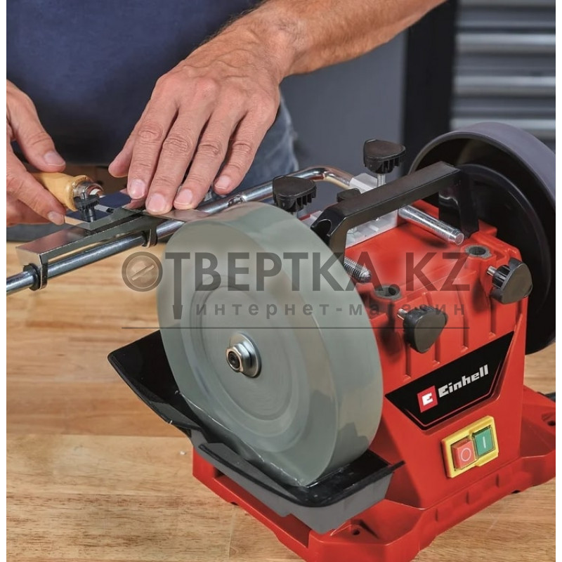 Полировальный станок Einhell TC-WG 200 4418008 позволяет заточить инструмент максимально точно за счет небольшой скорости вращения диска. Это снижает выработку искр и опасность работы.