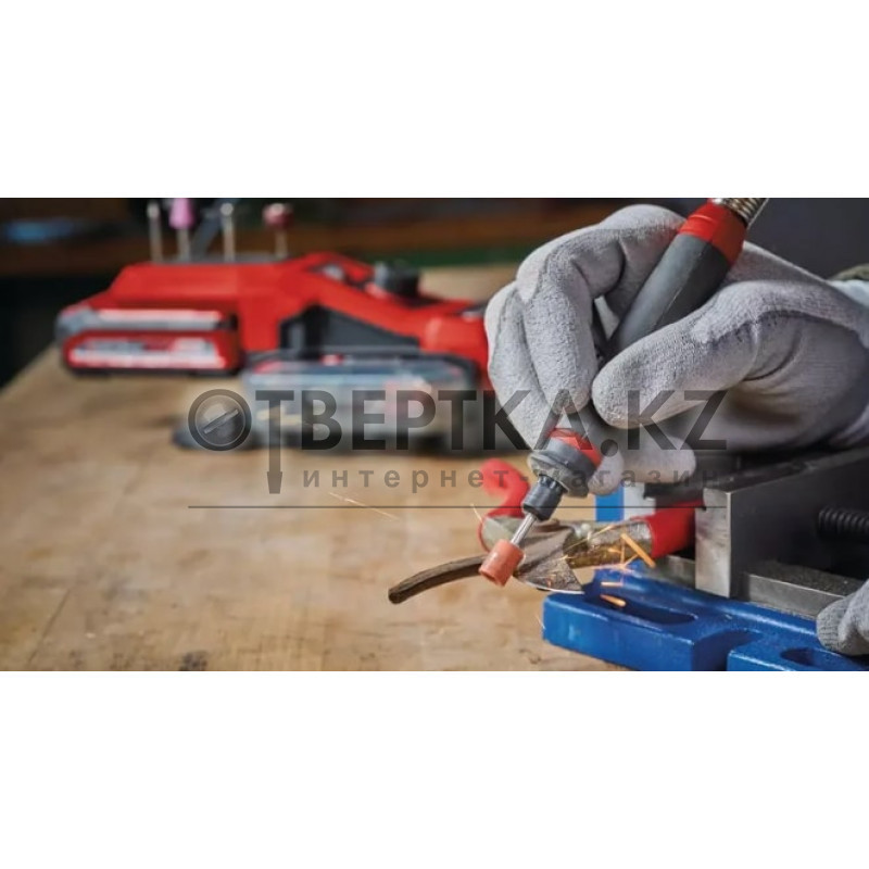 Аккумуляторный гравер Einhell TE-MT 18/34 Li Solo 4419360 - верный помощник в выполнении различных задач, таких как гравировка, полировка, фрезерование, шлифование, резка и чистка. Электронный регулятор скорости позволяет изменять обороты гравёра от 5000 до 34000 об/мин, что позволяет работать с материалами разной плотности. Различные насадки любых производителей могут быть присоединены к головке машины благодаря наличию 4-х зажимных цанг 0,8/1,6/2,4/3,2 мм. точность при работе. Кнопка фиксации шпинделя позволяет легко менять насадки. Станция оснащена держателем для аксессуаров, ящиком для аксессуаров, ремнем для переноски, настенным кронштейном и прорезиненными ножками. Инструмент поставляется без аккумулятора и зарядного устройства, но он может быть приведен в действие с помощью Power X-Change аккумулятора.