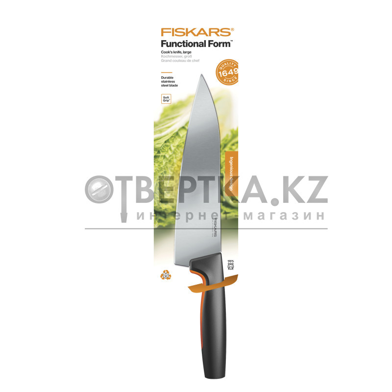 Большой поварской нож Fiskars Functional Form™ разработан для легкой ежедневной работы и прост в уходе