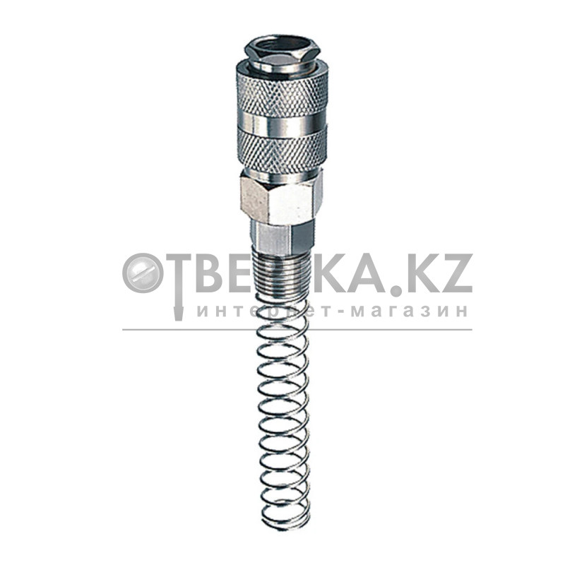 Разъемное соединение Fubag 180131 рапид-пружинка для подключения компрессора через шланг к пневмоинструменту. Пружина не позволяет шлангу деформироваться и перегибаться в месте соединения.