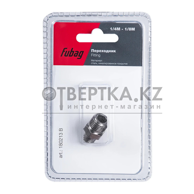 Переходник Fubag 180213 B предназначен для соединения выхода компрессора со шлангом пневмоинструмента. Переход резьбы: внешняя 1/4" (папа) - внешняя 1/8" (папа). Поставляется в блистере.