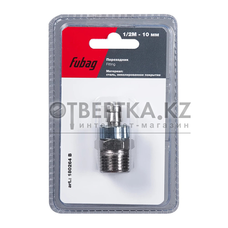 Коннектор Fubag 180264 B. Для соединения компрессора шлангом с пневмоинструментом. Крепление к инструменту - резьба 1/2" (папа), к шлангу - "елочка" (10 мм). Обжимное кольцо 10х15 мм в комплекте. Поставляется в блистере.
