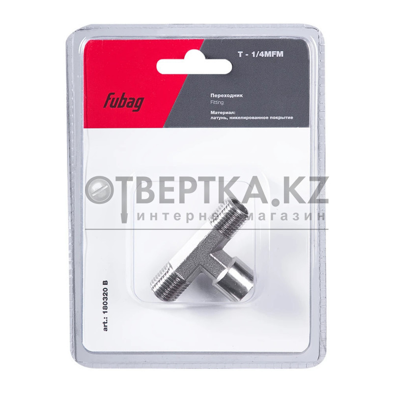 TT-образный переходник (тройник) Fubag 180320 B позволяет подсоединить к пневмомагистрали дополнительный участок. Крепление - резьба 1/4". Поставляется в блистере.