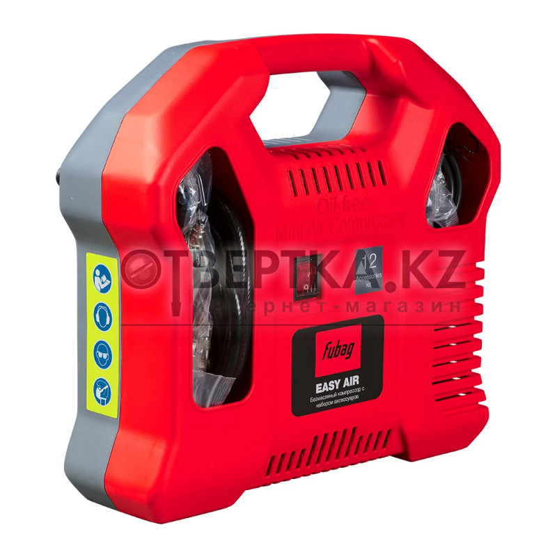 Fubag Easy Air — компактный переносной безмасляный компрессор, предназначенный для подачи чистого сжатого воздуха к пневмоинструменту. Идеально подходит для бытового использования, ремонта, гаражных работ и подкачки различных изделий.