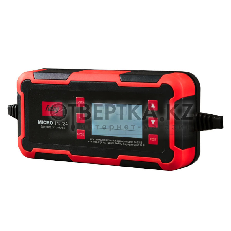 Зарядное устройство FUBAG Micro 140/24 — инновационное зарядное устройство для свинцово-кислотных аккумуляторов 12/24 В и литиевых батарей 12 В (включая LiFePO4). Идеально подходит для легковых и грузовых автомобилей, мотоциклов, автобусов, яхт и снегоходов. Обеспечивает зарядку аккумуляторов емкостью до 230 Ач и продлевает срок службы батарей за счет 8-ступенчатой программы и восстановления сульфатированных аккумуляторов.