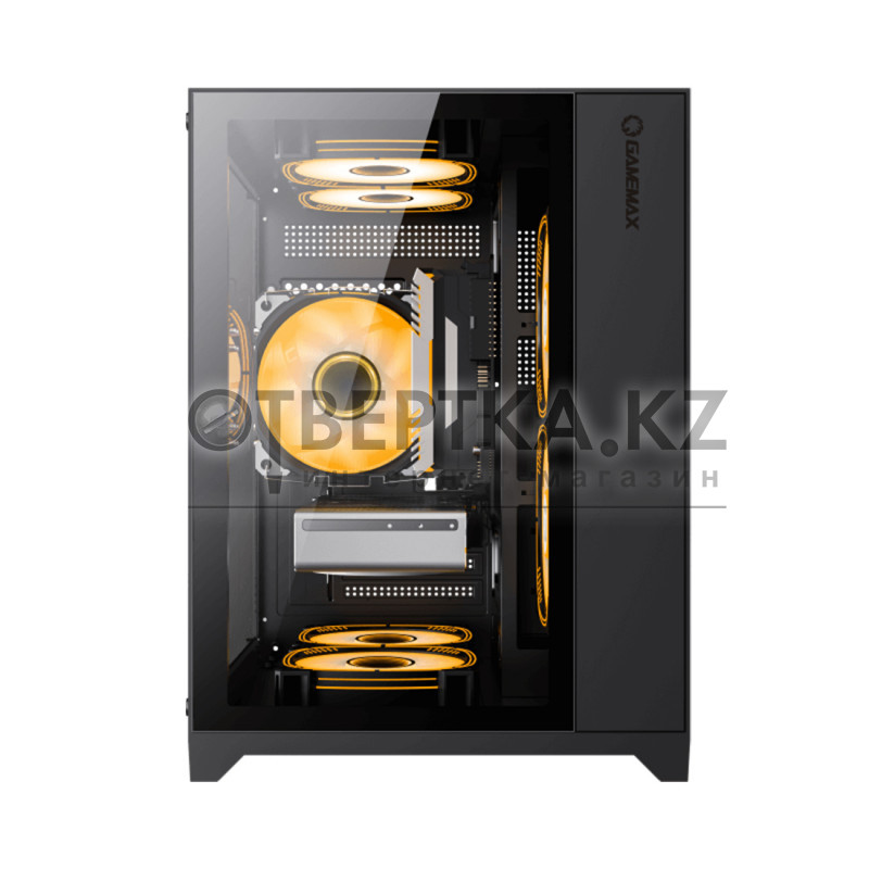 Корпус выполнен в классическом черном цвете с панелями из закаленного стекла, обеспечивающими полный обзор внутренних компонентов и эффектное свечение ARGB вентиляторов. Стальная конструкция корпуса обладает высокой прочностью и долговечностью.