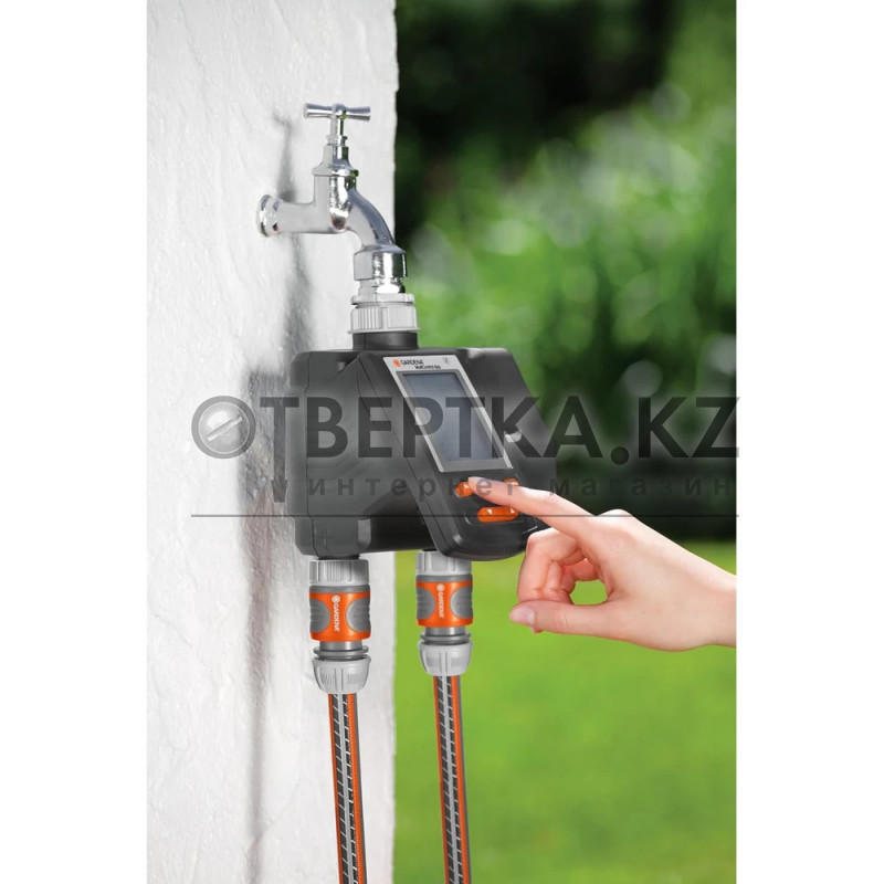 Таймер подачи воды Gardena MultiControl duo 01874-20 — готов к подключению и использованию. Батарея в комплект не входит.