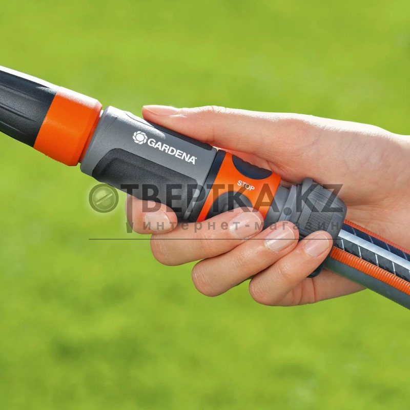 Gardena 18214-29 — современный коннектор для быстрого подключения насадок к садовому шлангу.